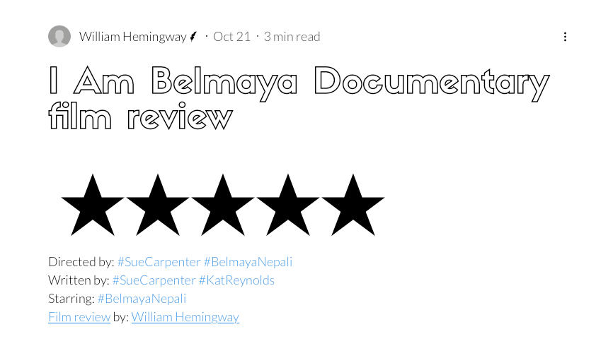 “Beautifully and intimately shot, displaying the beautiful mountainous countryside of her home, I Am Belmaya is a celebration of a life grasped against the odds.”