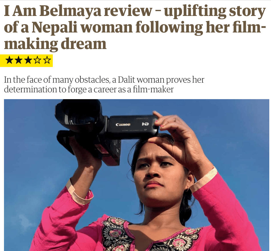 “a truly inspiring watch, not least for the chance to see Belmaya’s education in filmmaking unfold on screen, through her own lens”