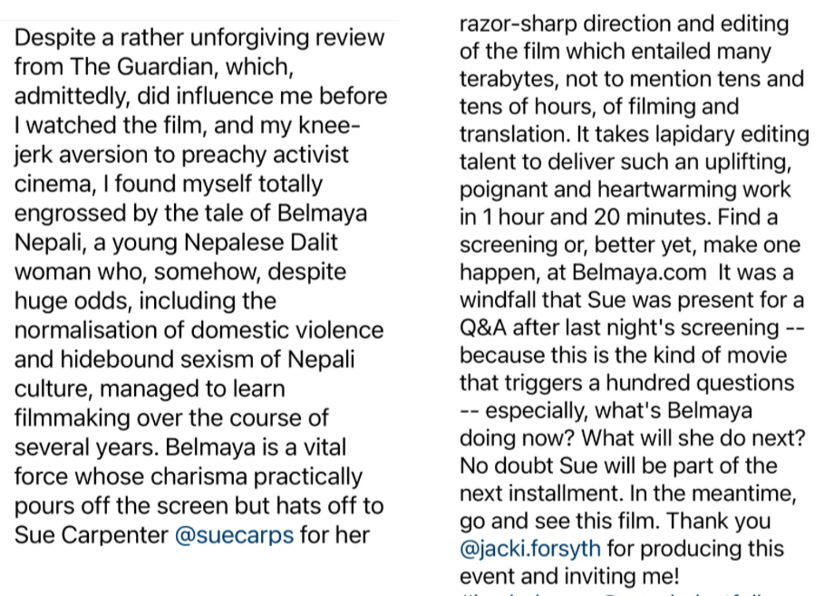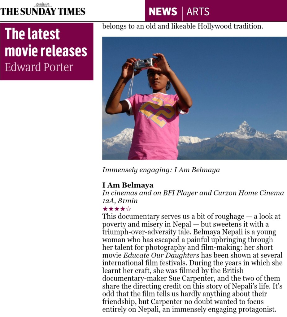 “Belmaya is one of the most likeable people you could meet in a film, and remains herself whether in London or Kathmandu”